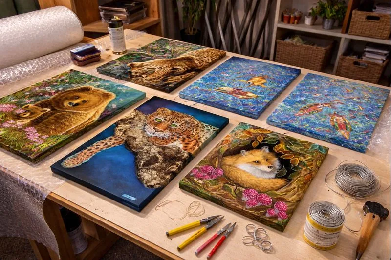 These moments behind the scenes are often quiet and unseen, yet they are an important part of the journey. Each painting received attention and care, a final gesture of respect before it meets its viewers.