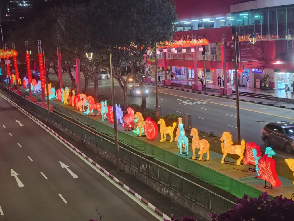 The streets were alive. Red lanterns hanging across the roads. Gold decorations glimmering under the evening lights. Bazaar stalls packed side by side selling snacks, ornaments, pineapple tarts, bak kwa and every festive decoration imaginable. The noise, the chatter, the bargaining, the laughter. It was chaotic in the most beautiful way.