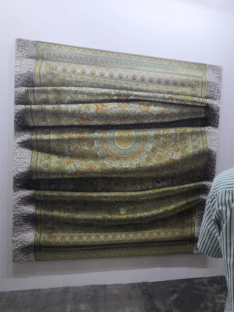 There was one painting in particular that stayed with me. A depiction of a carpet, folded and creased, rendered with astonishing precision. From afar, it read simply as fabric. Up close, it revealed an intricate universe of pattern, texture, shadow, and restraint. It wasn’t trying to impress. It was inviting you to stay.