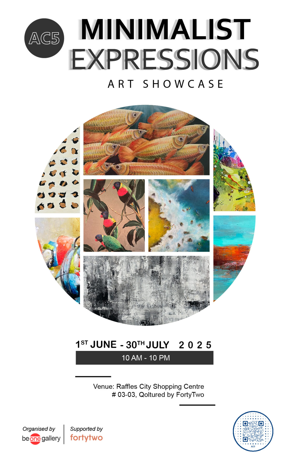 Step into a world of refined beauty at the Minimalist Expressions Art Showcase, featuring a curated collection of artworks that explore simplicity, form, and emotional clarity. Hosted at Raffles City Shopping Centre (#03-03, Qoltured by FortyTwo), this showcase runs from 1 June to 30 July 2025, open daily from 10 AM to 10 PM.