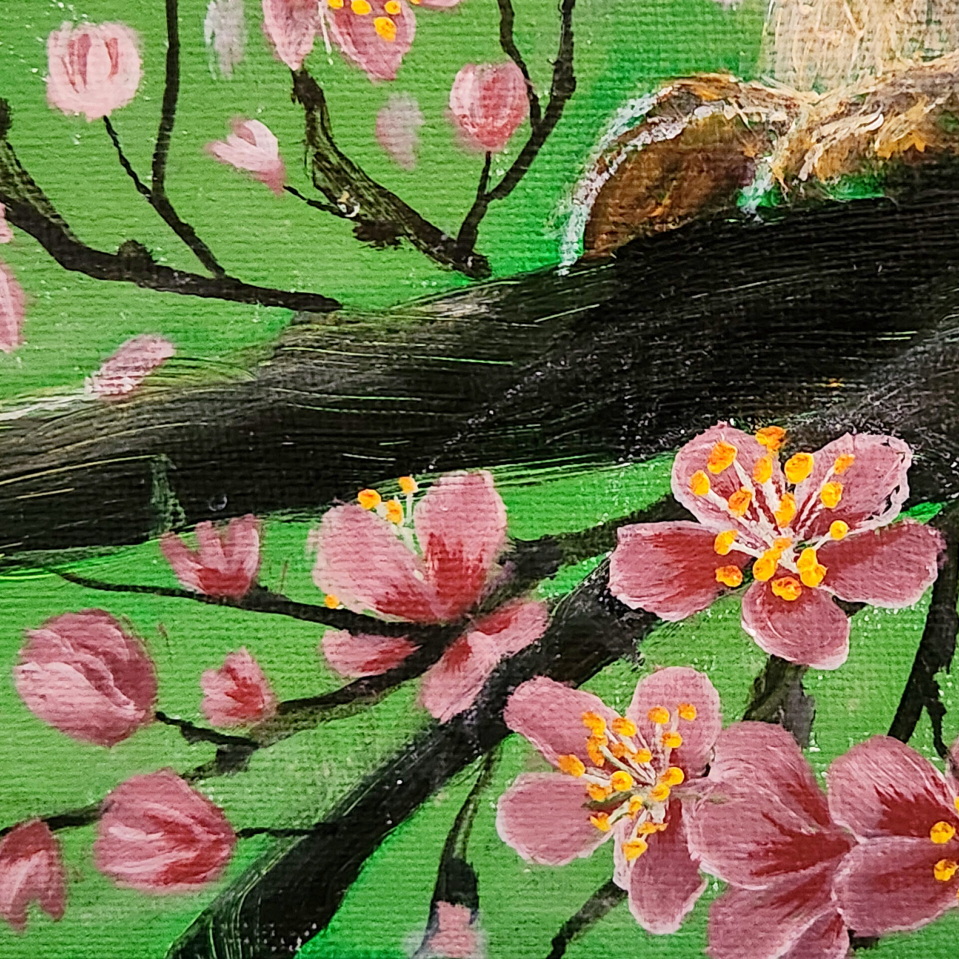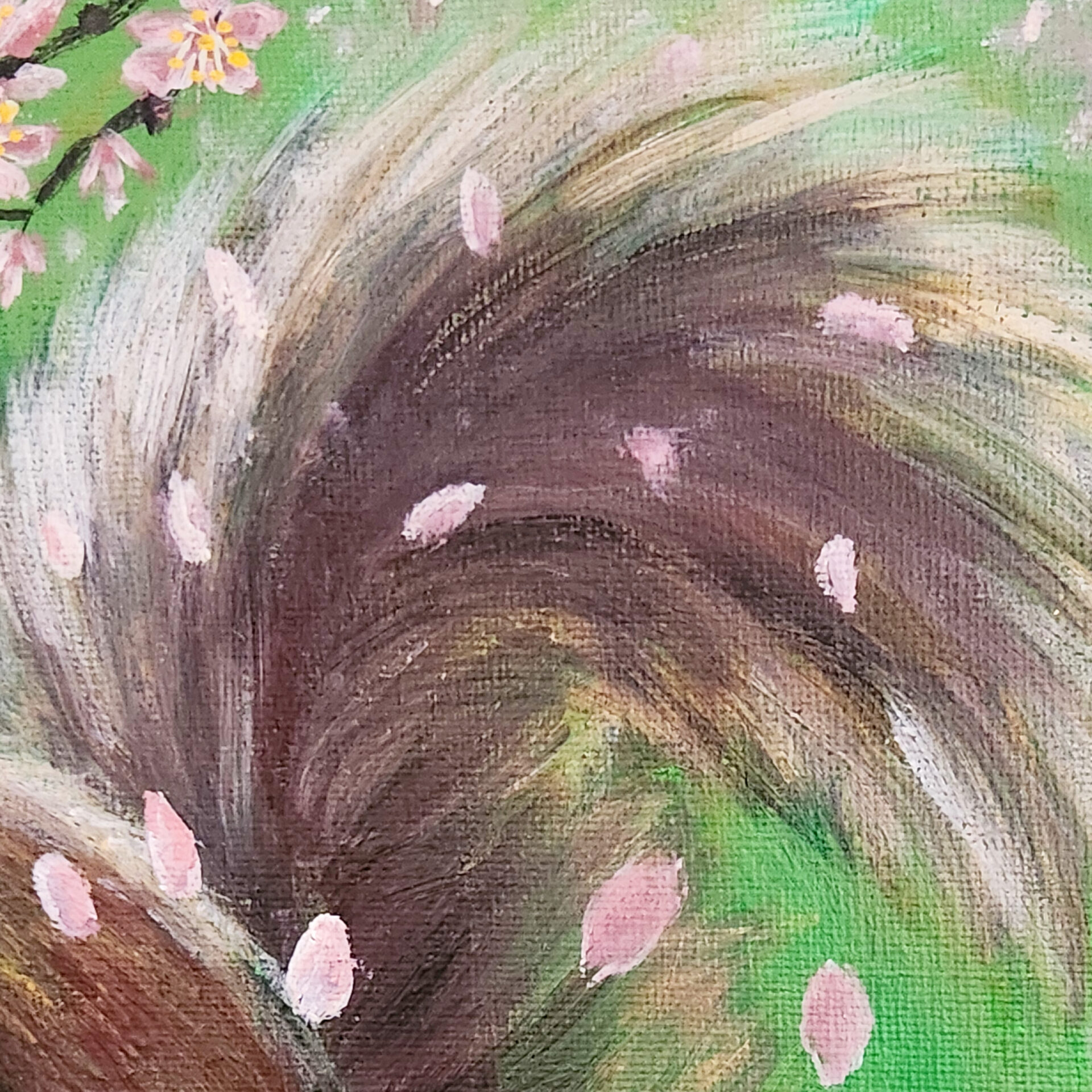 This original squirrel painting embodies the beauty of wildlife art, celebrating the delicate balance of nature and tranquility. The vibrant green background symbolizes renewal and growth, while the detailed brushstrokes highlight the texture of the squirrel’s fur, creating a lifelike presence. The movement of the falling petals enhances the dreamlike quality, making it a perfect addition to any nature-inspired art collection.