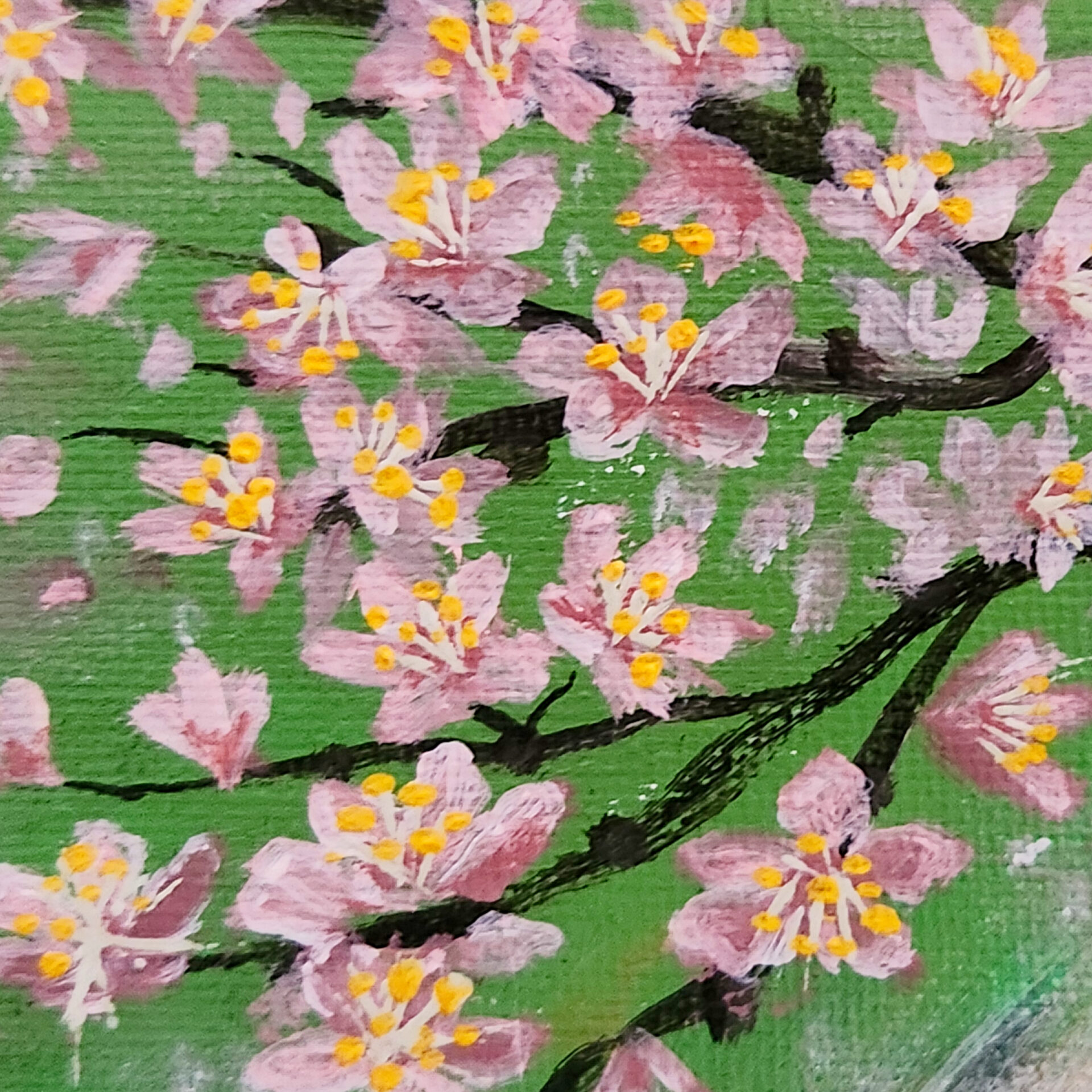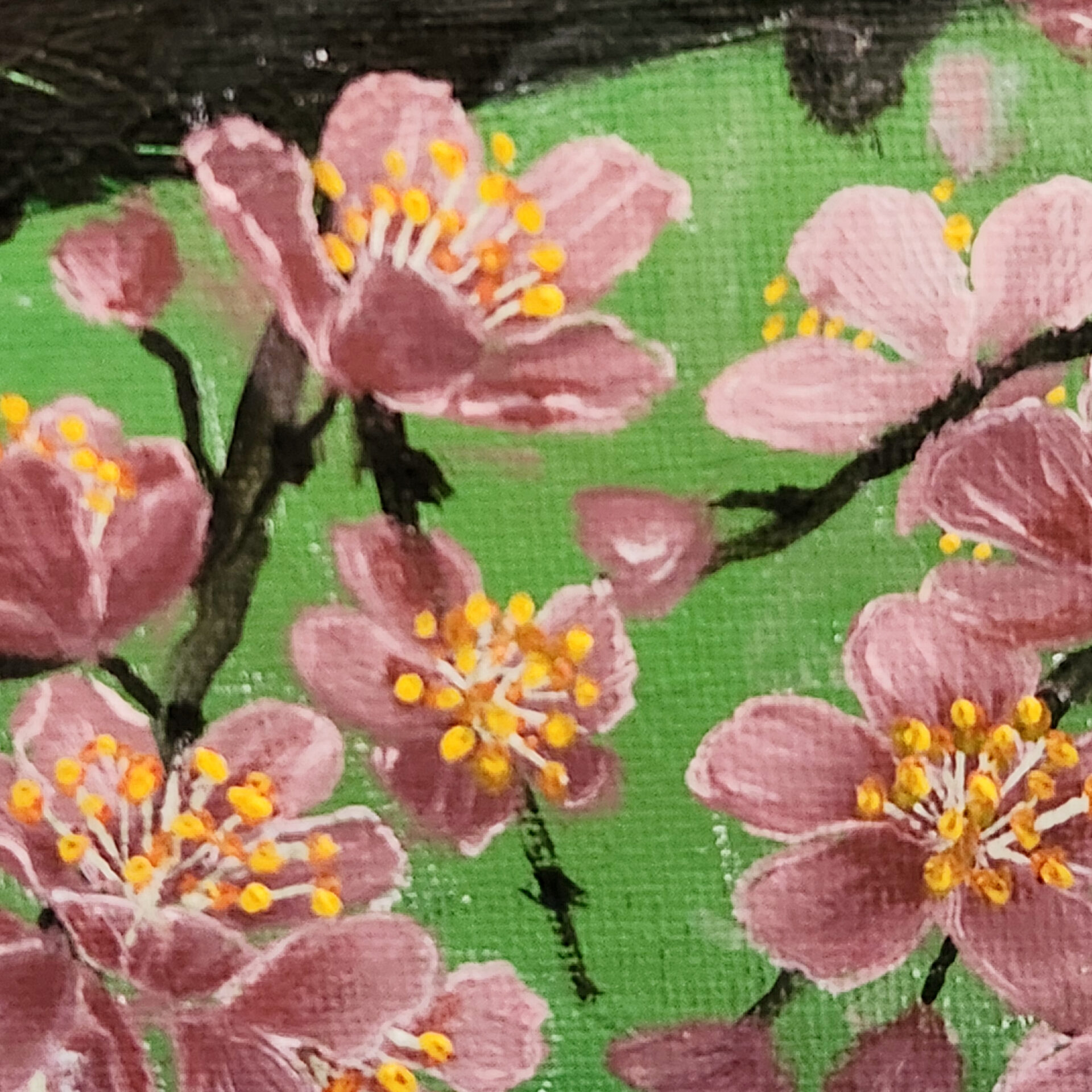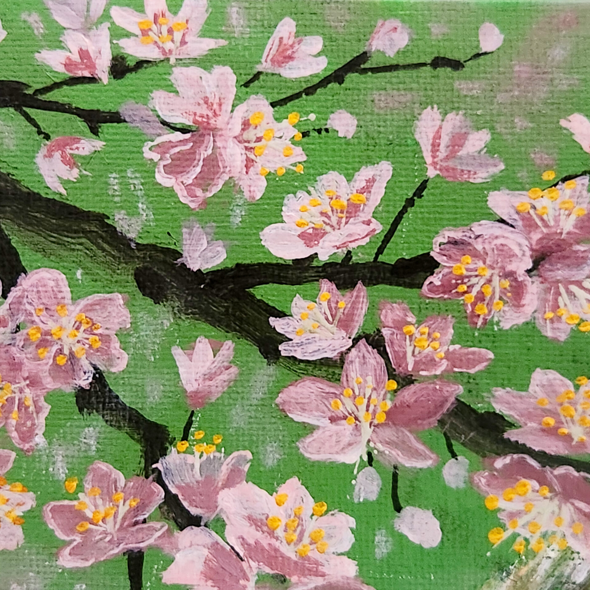 Danielle Art Original Acrylic and Oil Paintings A Squirrel’s Daydream painting: Squirrel amidst cherry blossom art, a wildlife painting for sale, nature-inspired artwork.