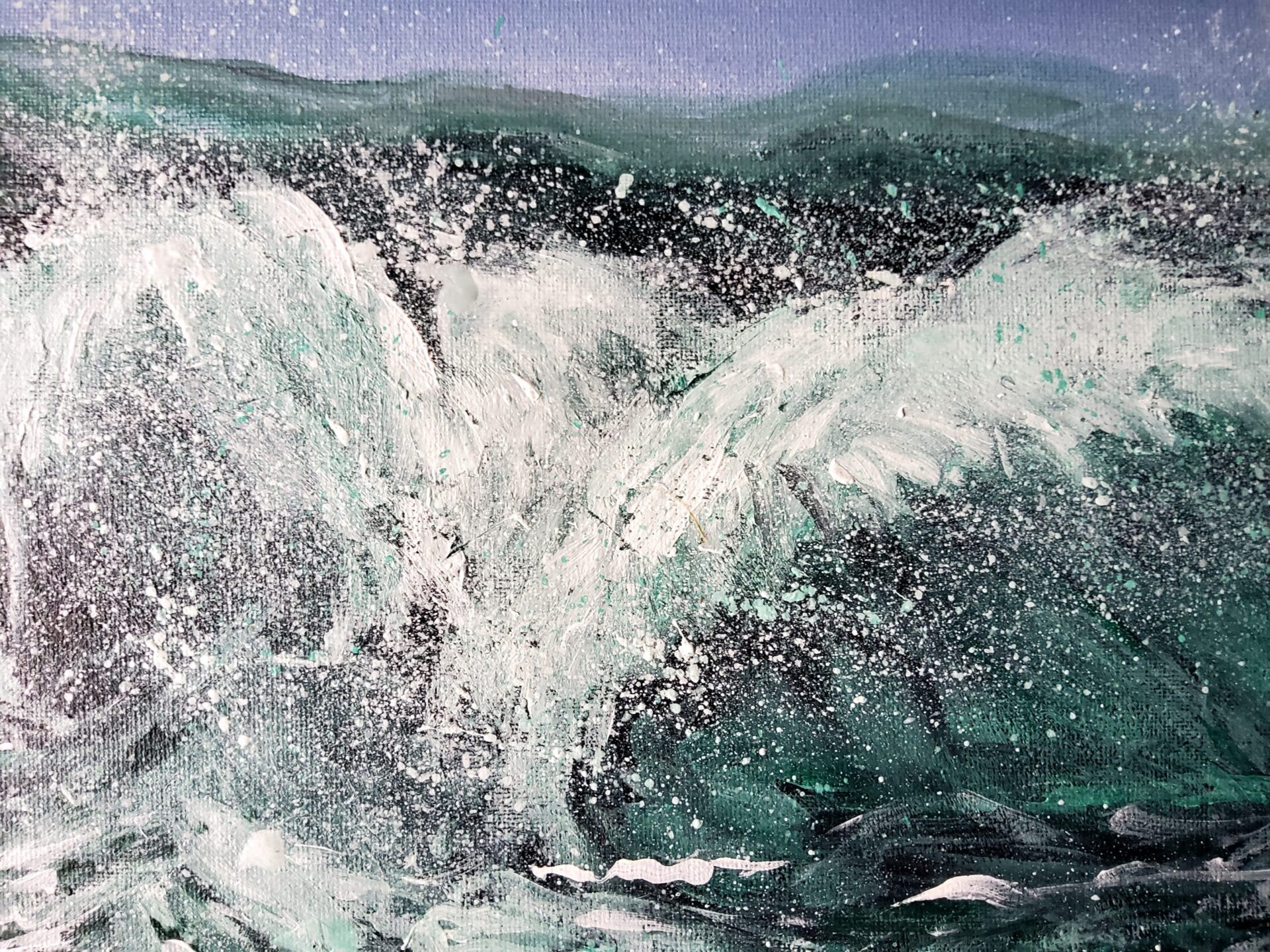 As I worked on this piece, I reflected on the ocean’s symbolism—the ebb and flow of challenges, the strength in resilience, and the serenity that can be found amidst chaos. The interplay of light and shadow in the waves brings a dynamic energy to the painting, while the soaring bird represents hope and the ability to rise above life’s tempests. It’s a reminder that even in turbulent times, there is beauty and renewal.