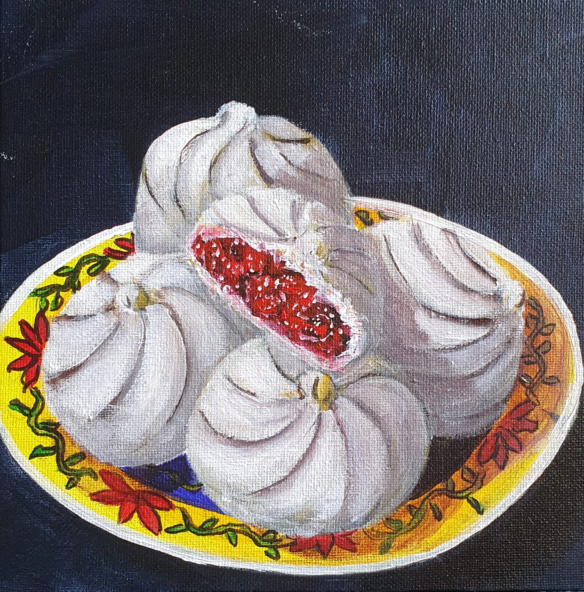 Delightful Char Siew Pau is a vibrant painting celebrating the charm of steamed buns filled with flavorful char siew. Capturing their delicate folds and rich filling, this artwork evokes comfort, tradition, and the joy of shared meals, making it a warm addition to any space.
