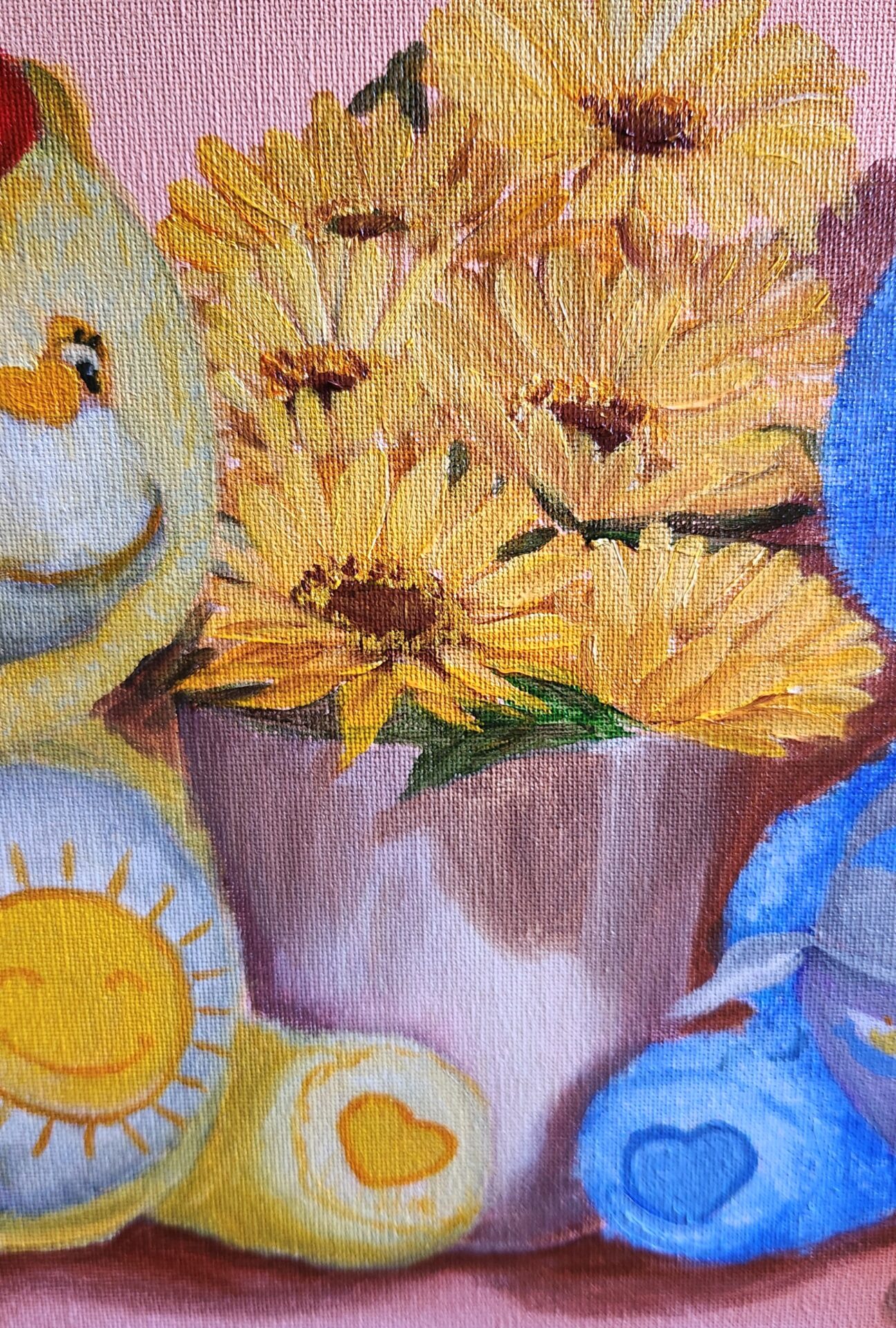 This artwork is my tribute to those little symbols of resilience and optimism, and I hope it stirs the same feelings of joy and nostalgia in others. For collectors, “Childhood Comforts: Sunshine & Tugs” is more than a nod to 1980s pop culture—it’s a heartfelt reminder of the power of small things to bring light and love into our lives. Whether it’s a connection to childhood memories or a celebration of enduring hope, I hope this piece finds a place in spaces that value both its nostalgia and its meaning.