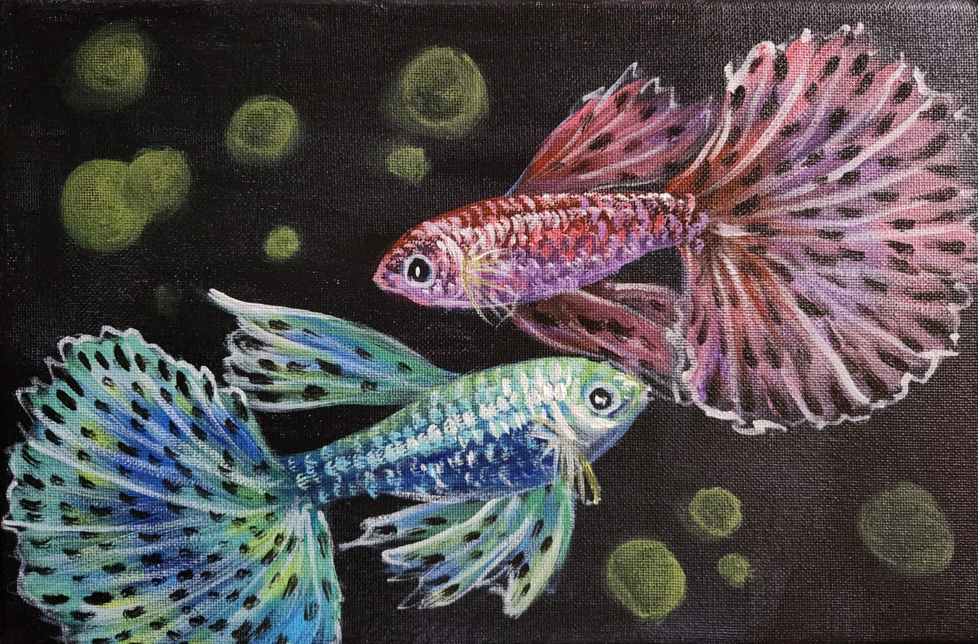 This painting celebrates the vibrant charm and elegance of guppies, showcasing their flowing tails, vivid patterns, and lively energy. A tribute to their beauty and resilience, it brings harmony, color, and movement to any space. Perfect for aquarists and nature lovers, this artwork adds joy and sophistication while reminding us of the intricate beauty of the natural world.