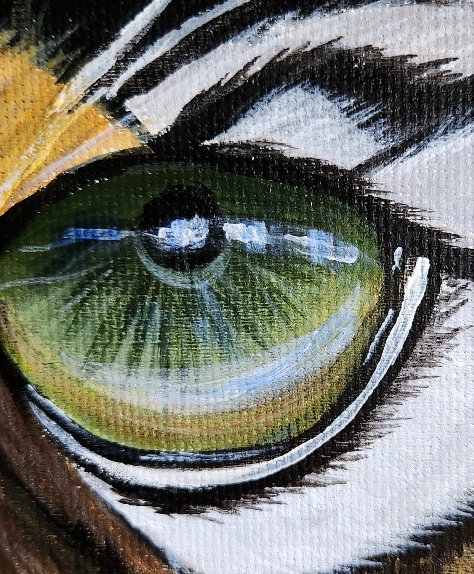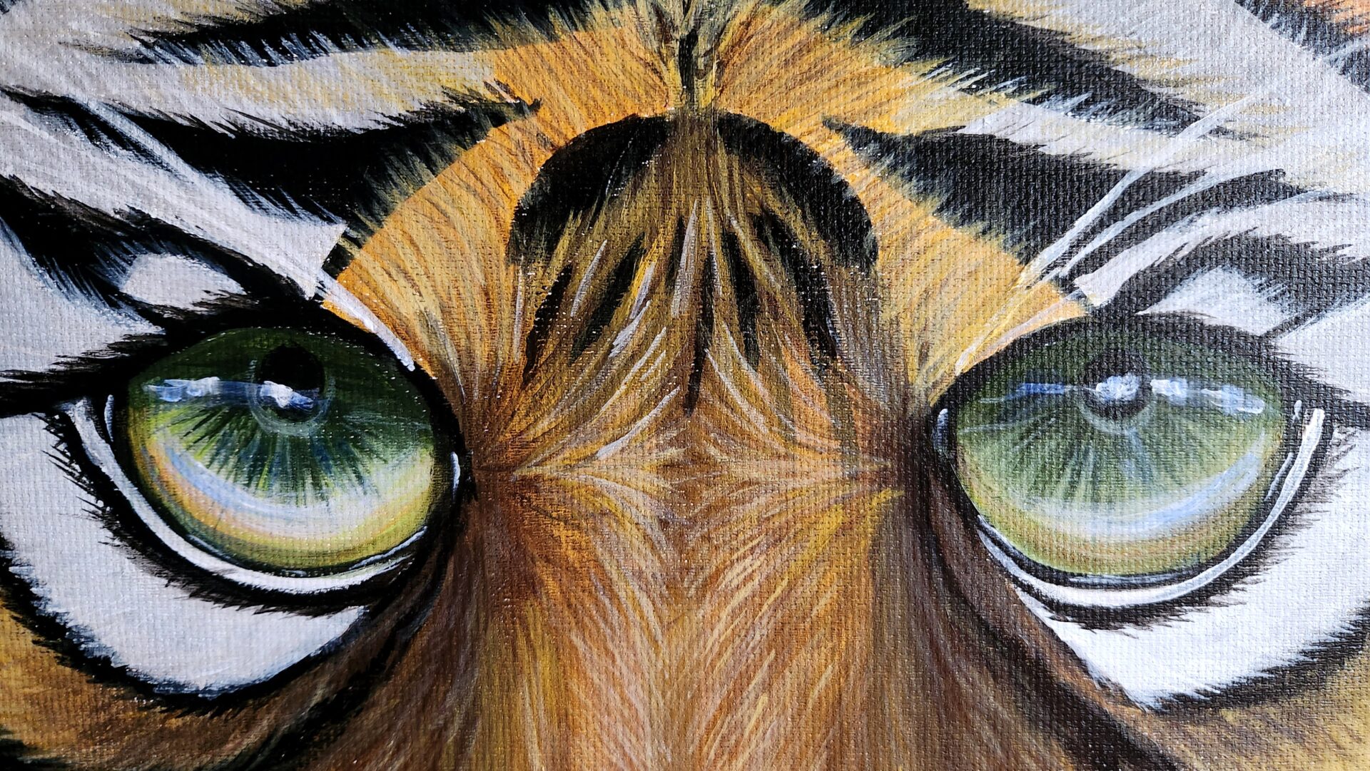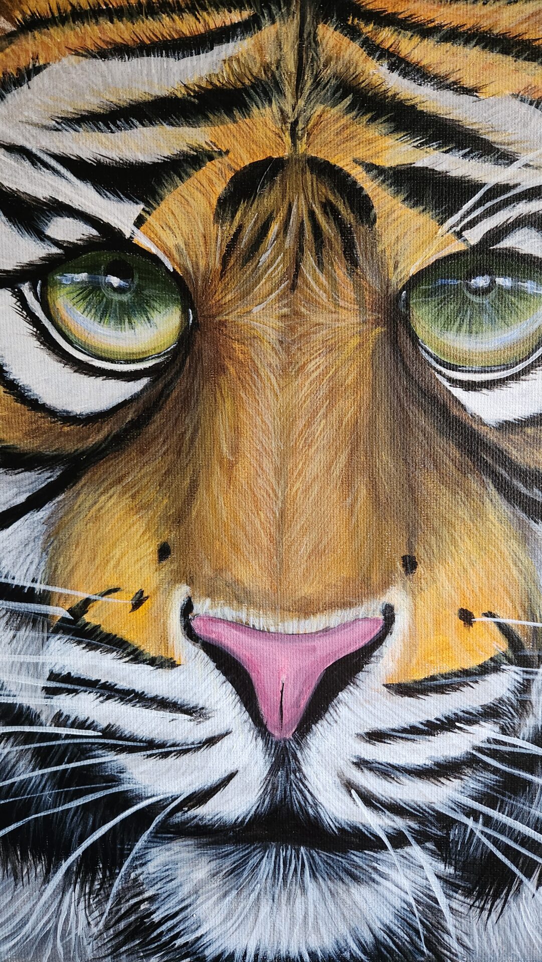 The tiger’s eyes are the heart of this piece—bold, intense, and full of life. They seem to tell a story of resilience, determination, and the instinct to survive against all odds. For me, this painting represents the wild spirit that resides within us all, urging us to be fearless in pursuing our dreams and embracing our uniqueness.