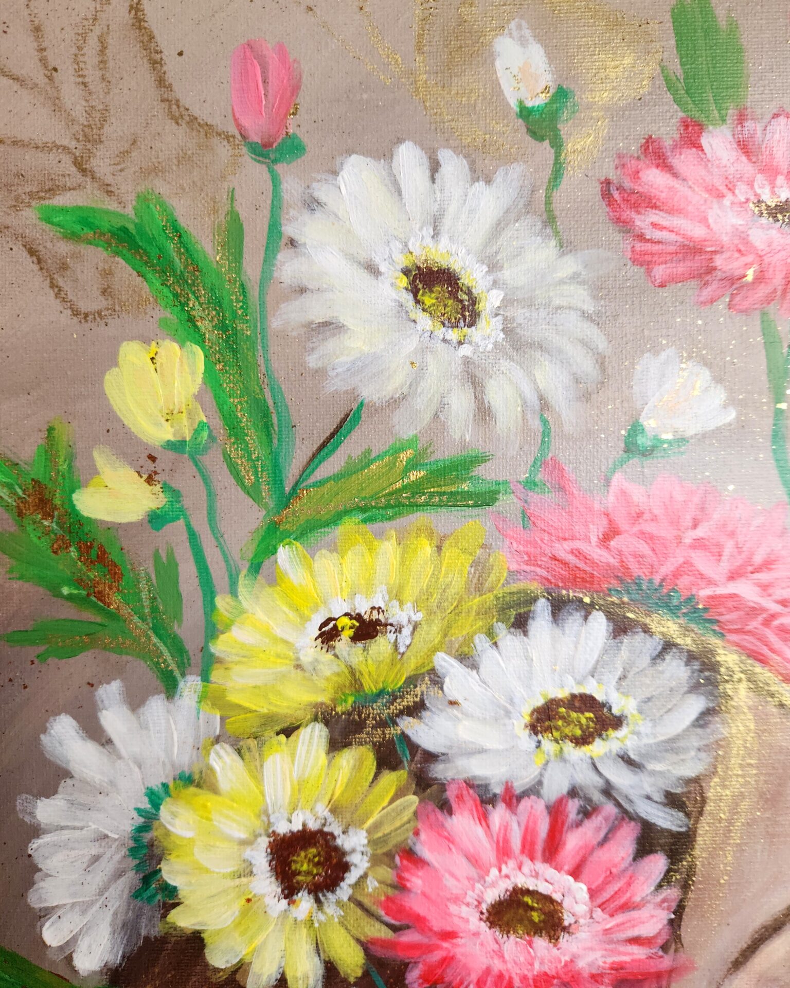 Season of Change, part of the Freedom Girl series, is a deeply symbolic artwork celebrating transformation, healing, and liberation. The painting portrays a serene girl holding a vibrant butterfly, symbolizing change and freedom, while surrounded by cascading gerberas that represent resilience and renewal. It reflects a journey of letting go of pain and toxic influences, embracing personal growth, and finding peace. This piece invites the viewer to celebrate the beauty of metamorphosis and serves as a daily reminder to embrace change, seek freedom, and thrive in life’s endless potential for renewal.