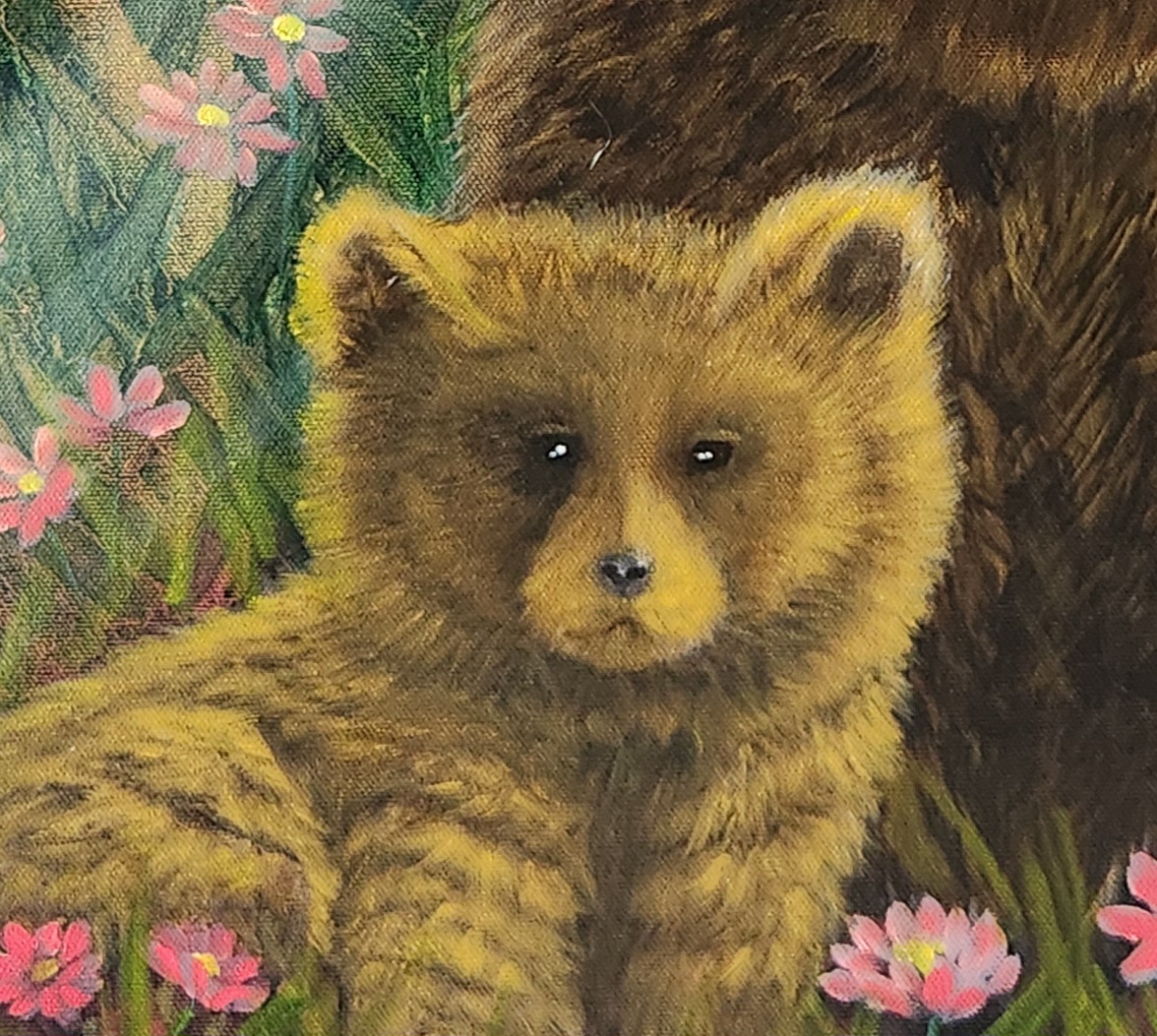 “Gentle Guardians” is a heartfelt tribute to the tender bond between a mother bear and her cub, set amidst a vibrant meadow of wildflowers. As I painted this piece, I wanted to capture the essence of maternal love—the strength, warmth, and protective care that resonates deeply in both nature and human life. The mother bear’s steady gaze conveys a quiet power, while the cub’s innocence reminds us of the beauty of unconditional love and the guidance we receive as we grow.