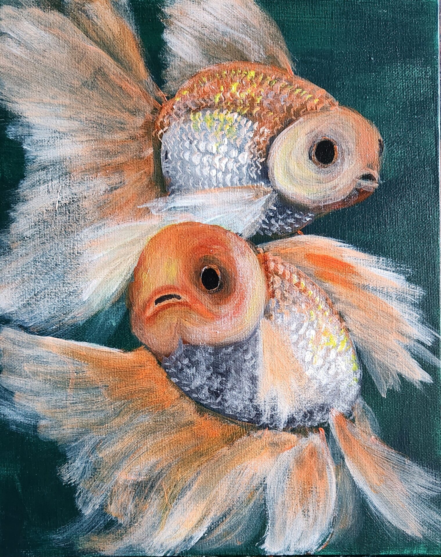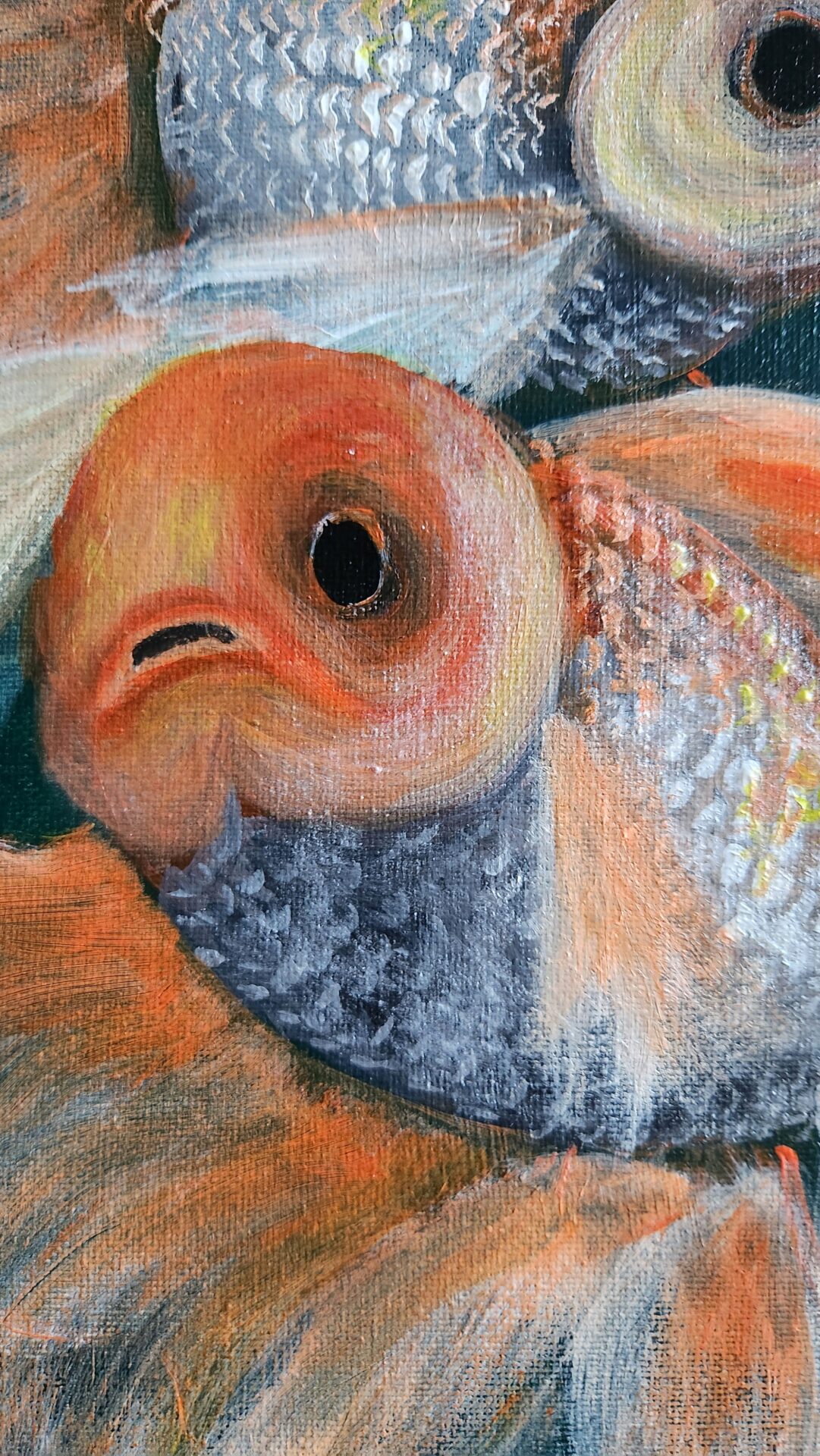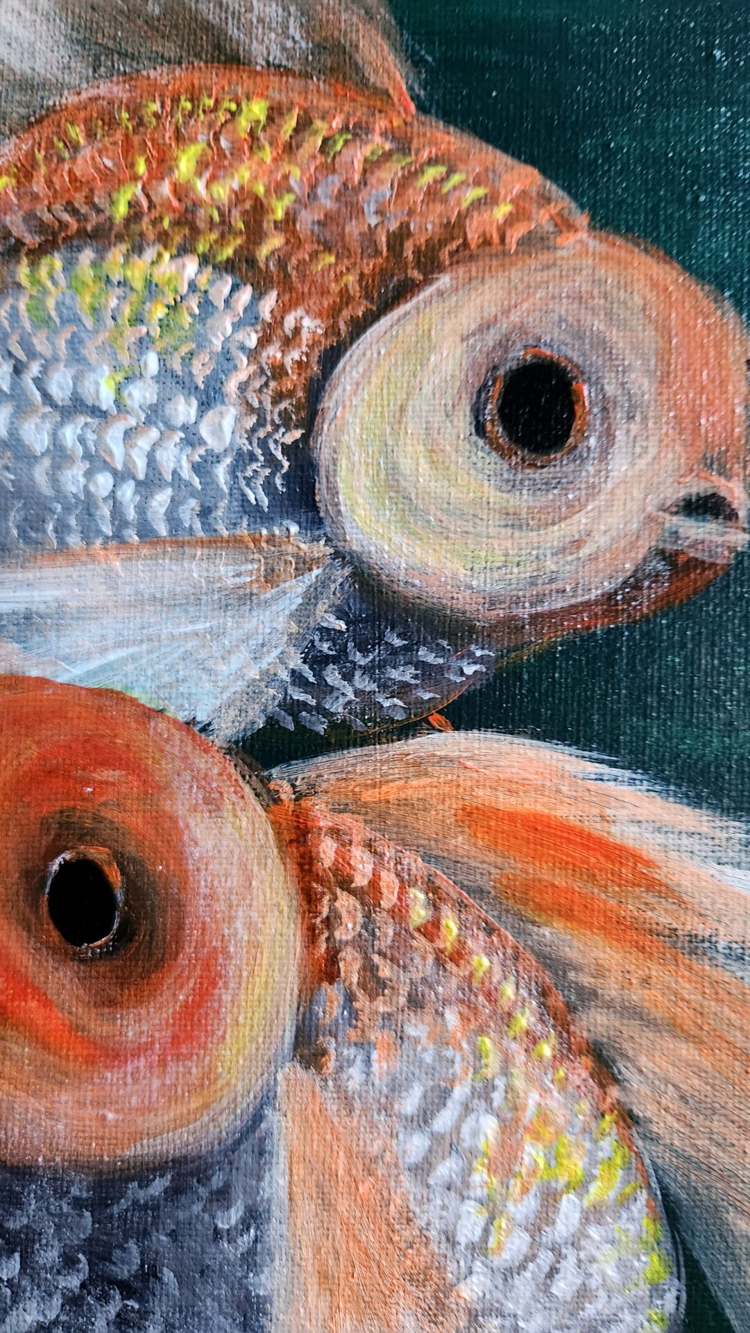 “Golden Arowanas” is a striking painting that captures the elegance and symbolism of the revered arowana fish, often associated with wealth, prosperity, and success. The artwork features golden-scaled arowanas gliding through an ethereal underwater setting, illuminated by radiant beams of light. With meticulous detailing and a rich color palette of golds, oranges, and deep aquatic blues, this piece exudes luxury and sophistication.
