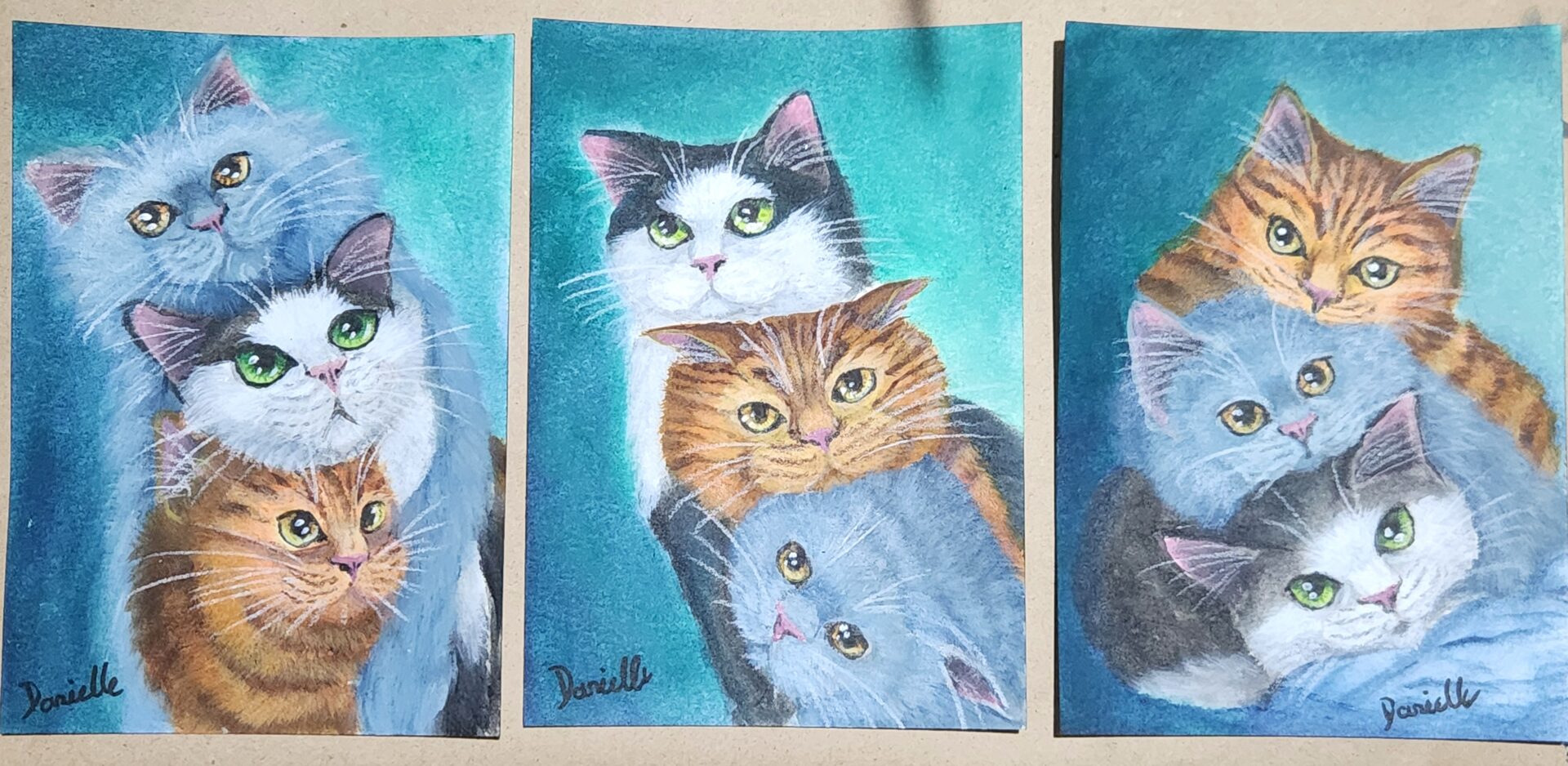This cheerful watercolor cat artwork celebrates friendship, fluffiness, and the delightful unpredictability of cats. It’s a lighthearted reminder to keep looking up, no matter what.