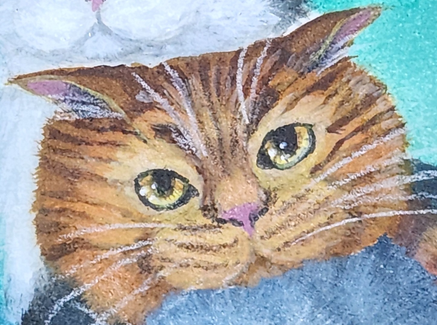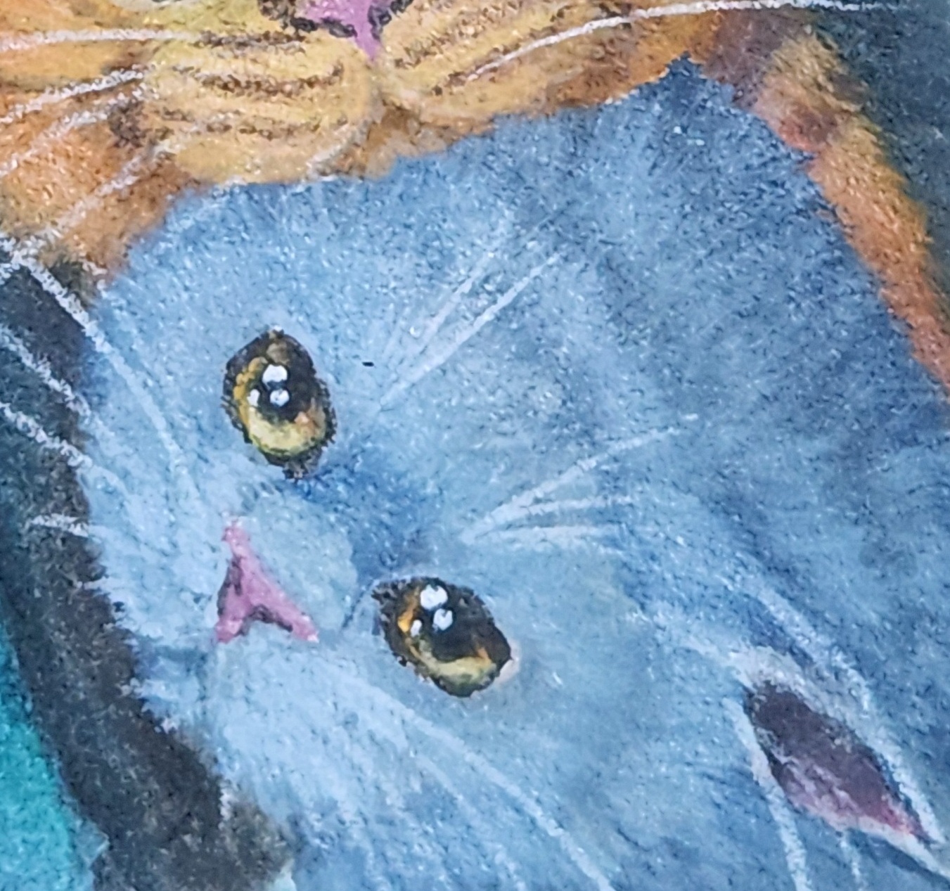 Painted in acrylic and pencil, this small-format artwork is perfect for cat lovers, animal art collectors, or anyone who believes happiness can come in small, furry bundles. Let these sweet companions bring a daily smile to your space.