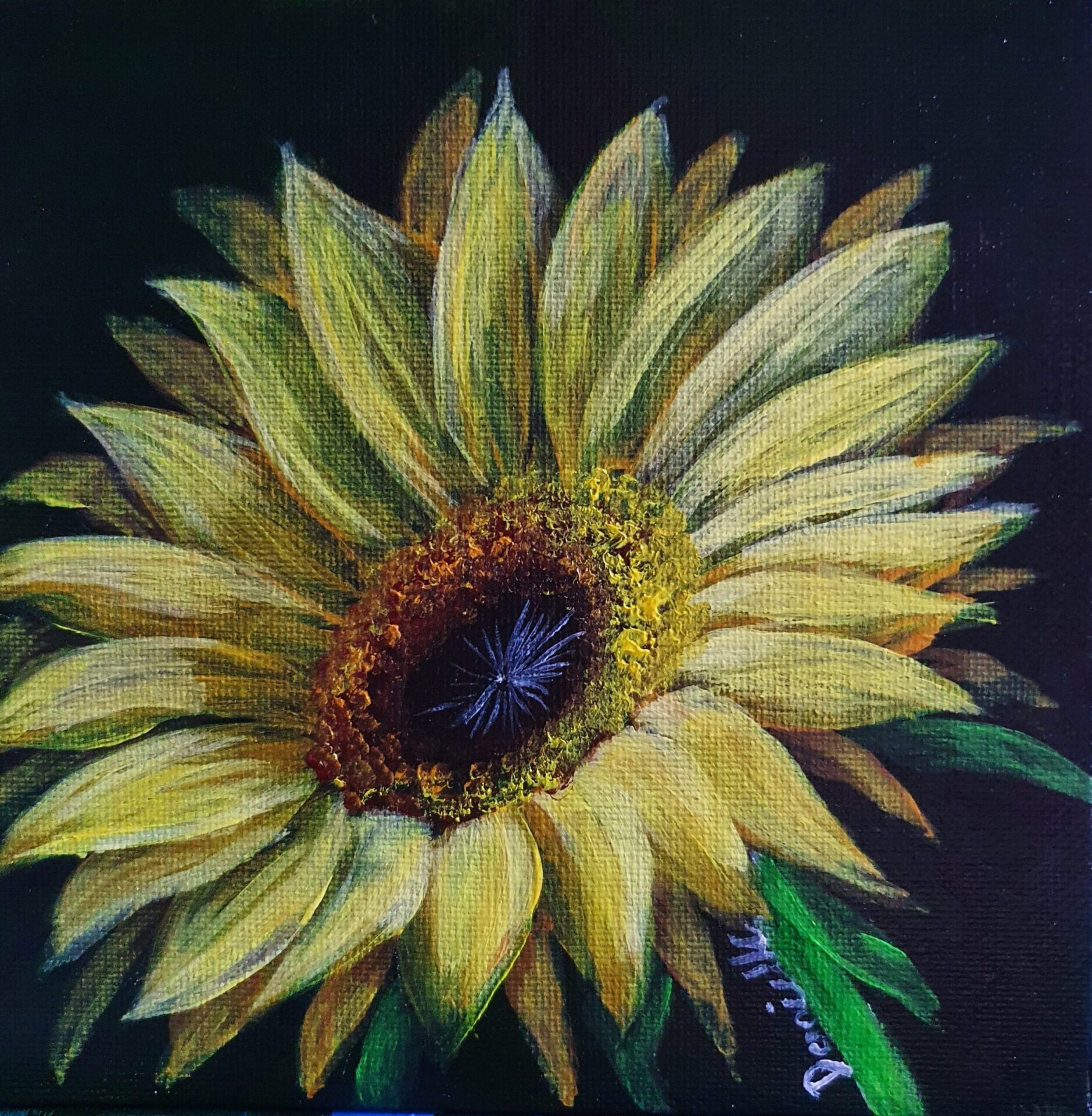 This sunflower painting radiates warmth and optimism, symbolizing resilience and the beauty of nature. With its vibrant golden petals and striking details, it’s perfect for brightening any space and inspiring positivity and growth. A timeless piece for flower and nature lovers alike.
