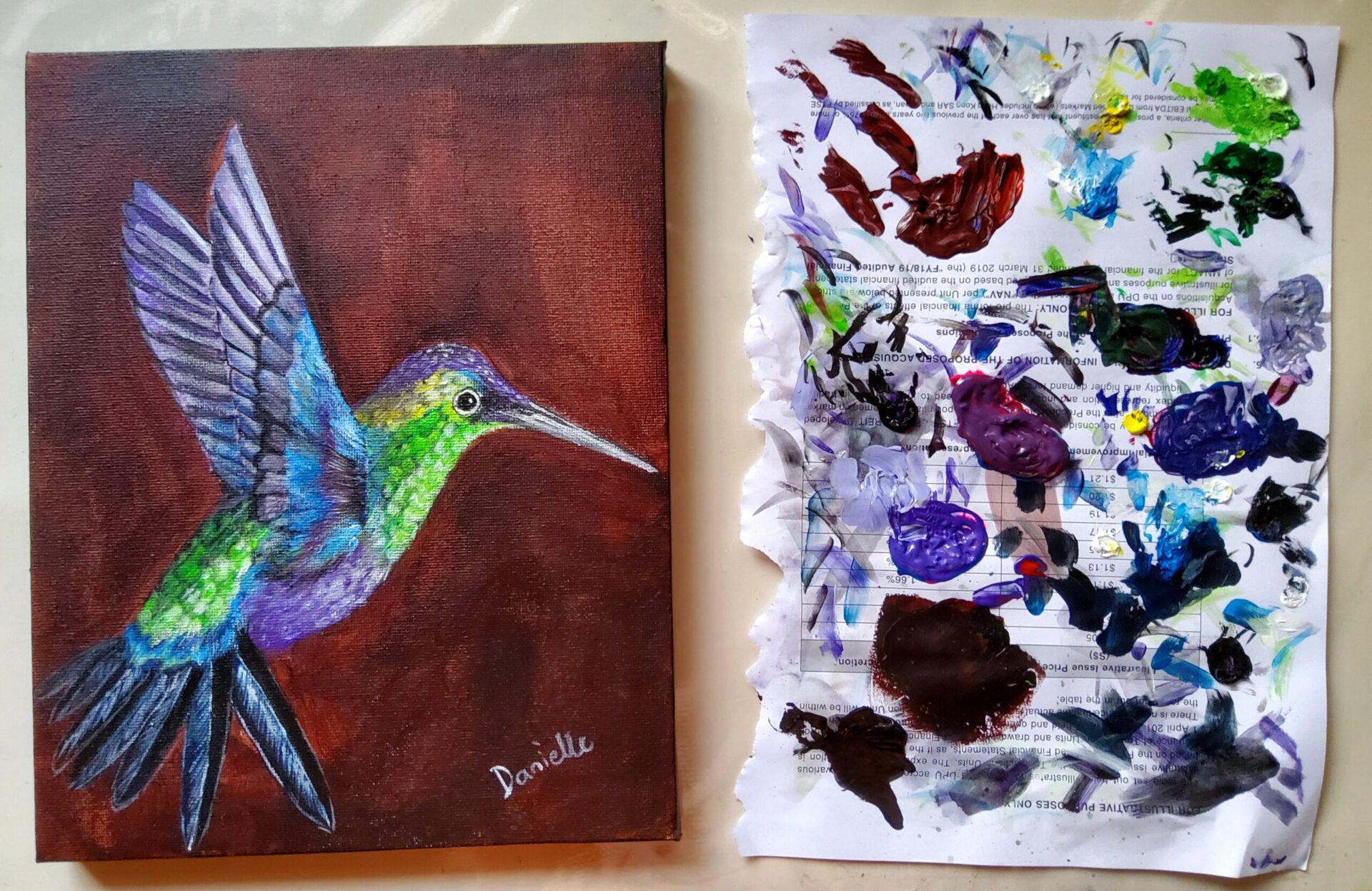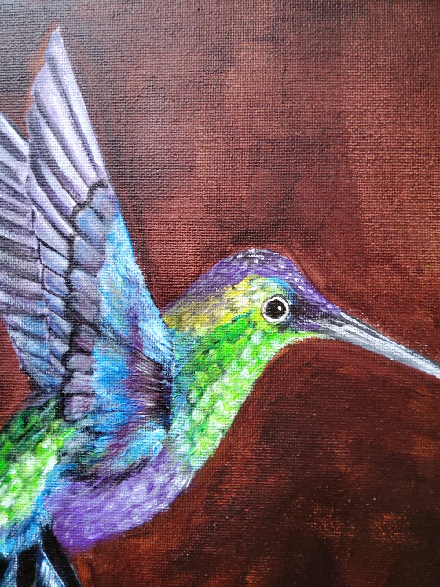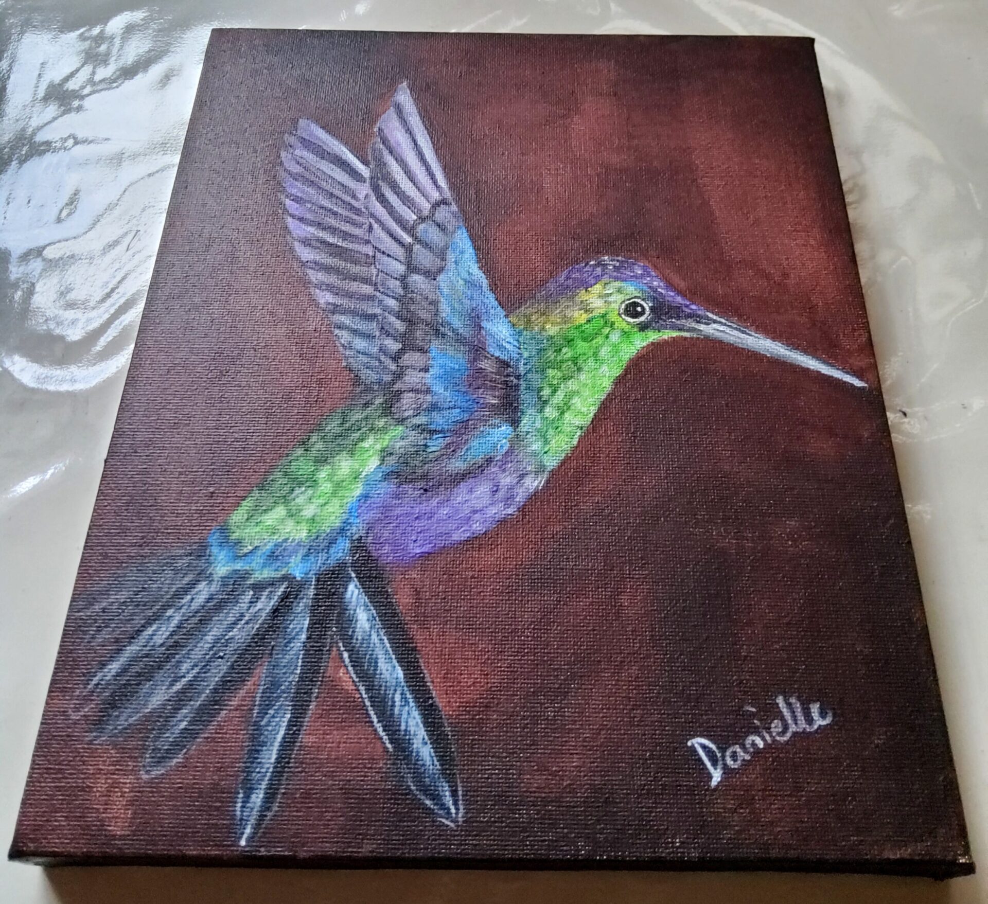 This is inspired by a little hummingbird I saw in the park. The hummingbird symbolizes joy, healing, good luck, messages from spirits, and other special qualities. I feel good vibes!