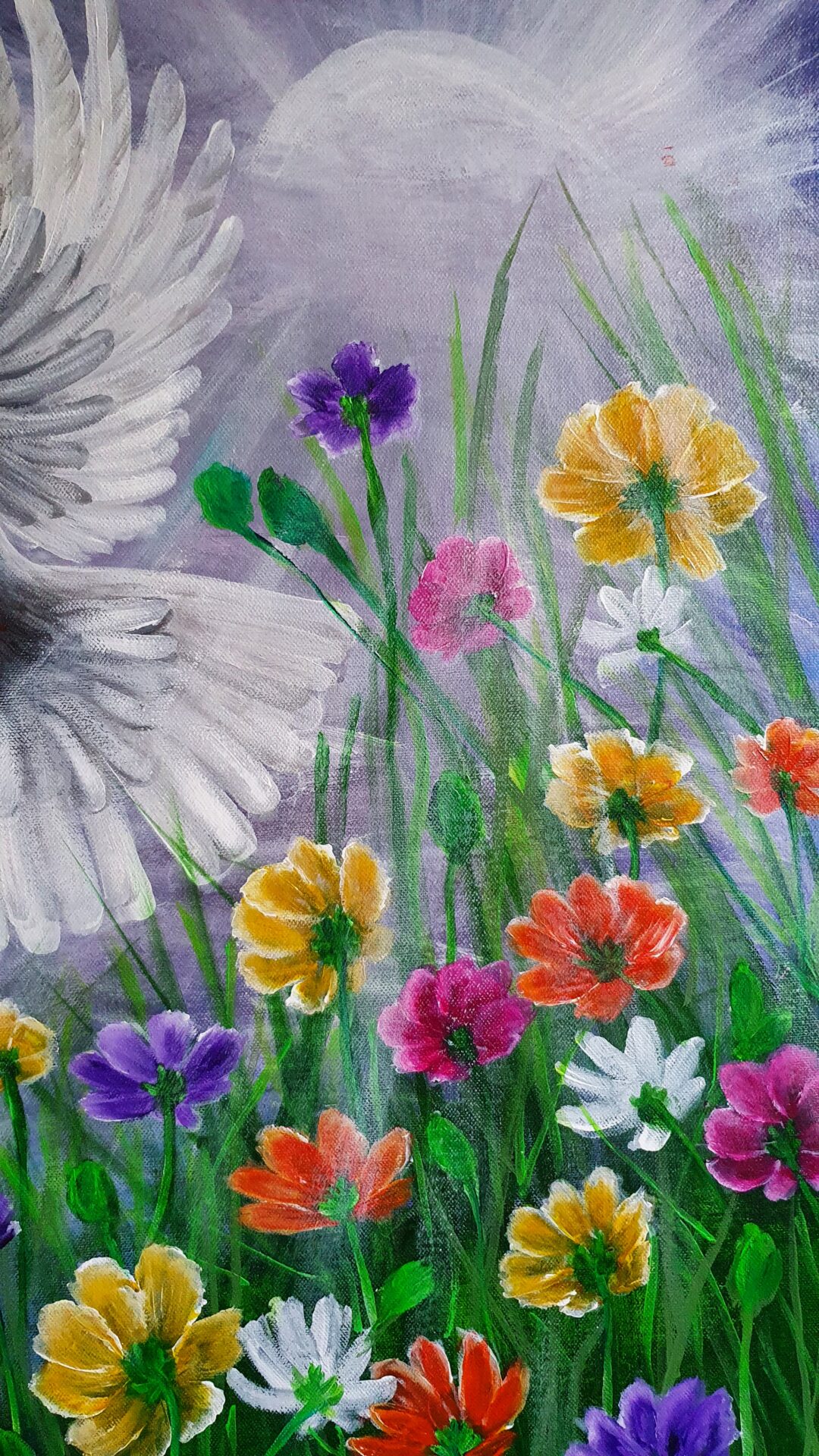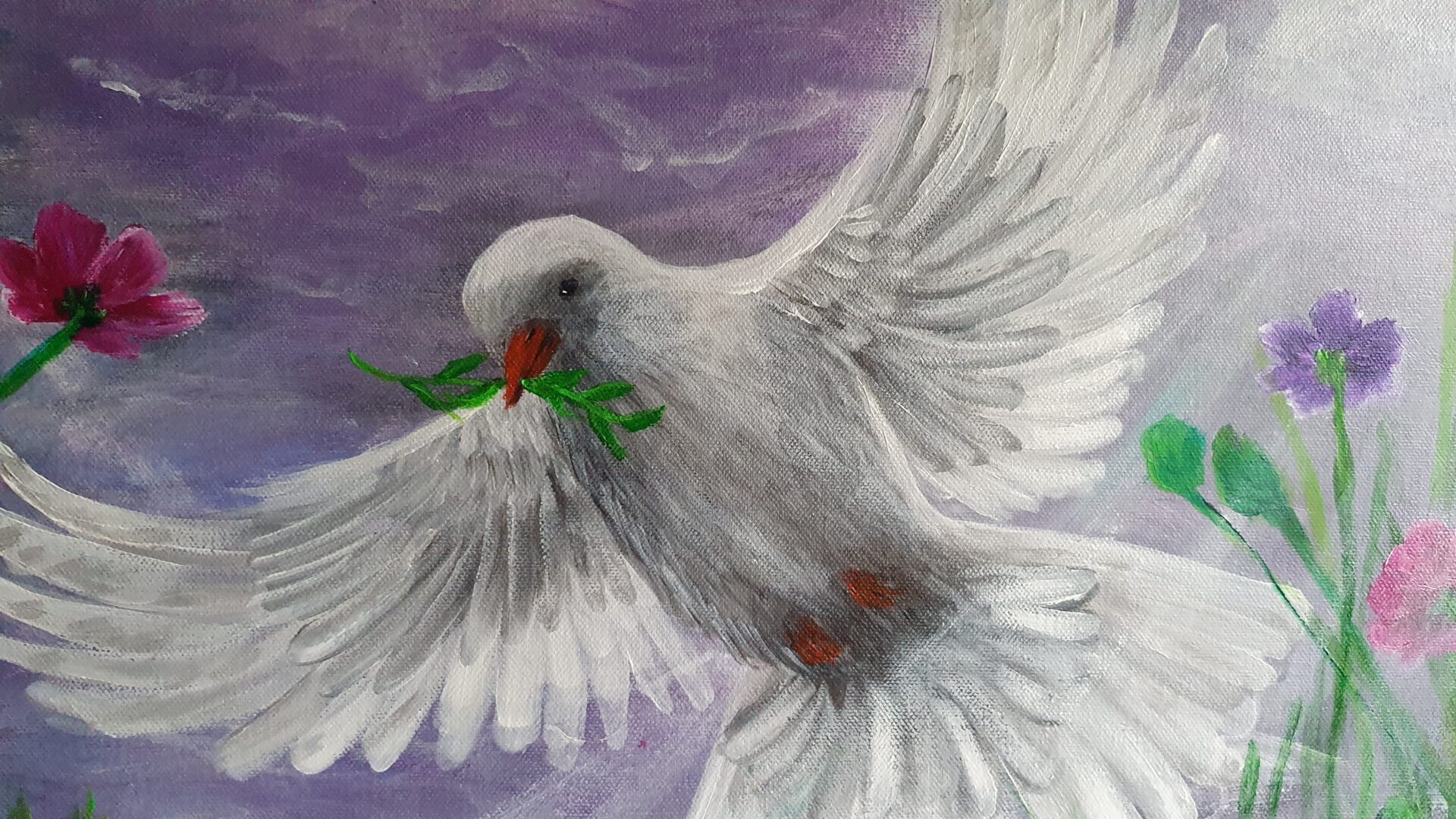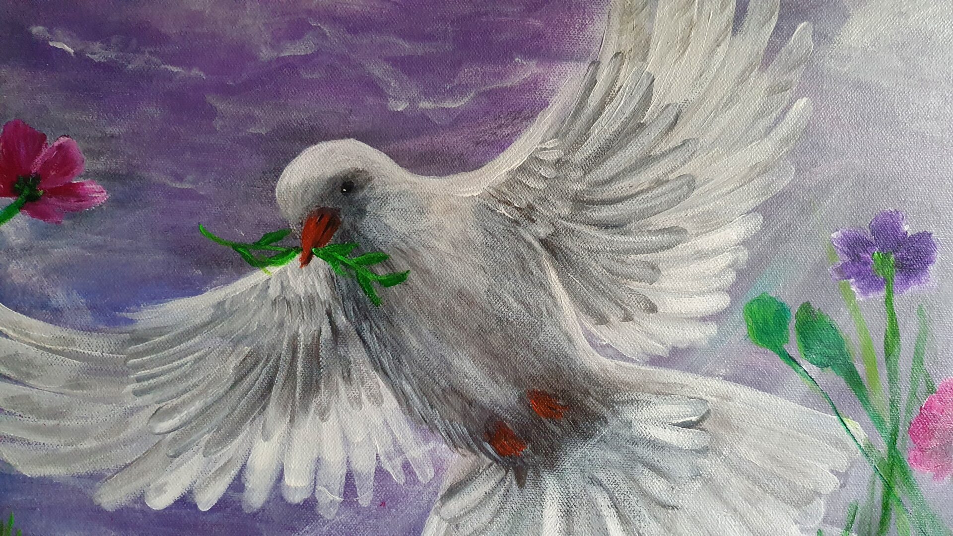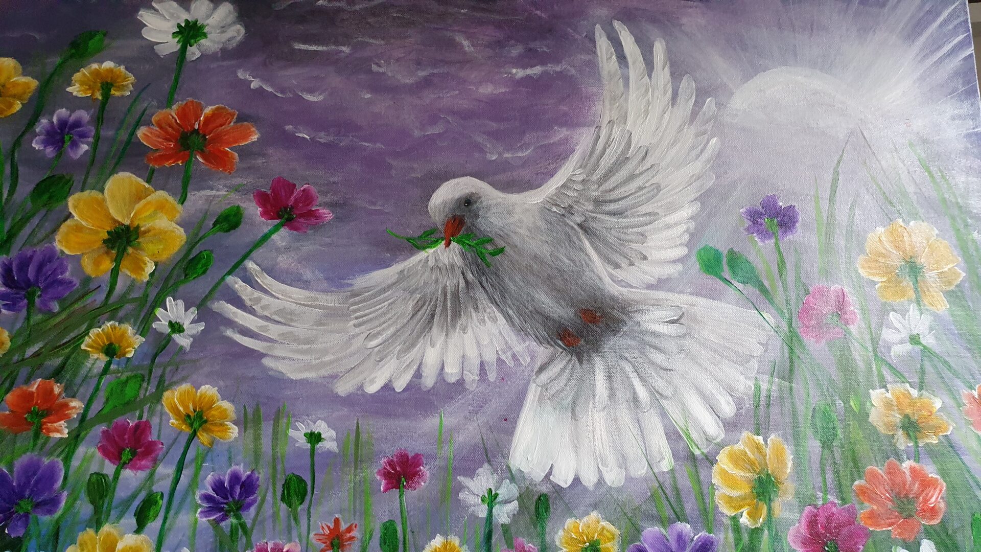 The little poem depicts that there will always be suffering and pain in the world, represented by the dark clouds. However, with every dark cloud, there is always a silver lining. The flowers facing the sun represents us, humans, reaching for the light when the sun appears, knowing that everything will be alright. The Sun represents God who never fails to rise and bring hope, joy and love to the world. The dove descending from the sky depicts that the Holy Spirit is always with us, guiding and protecting us, giving us peace in this world.