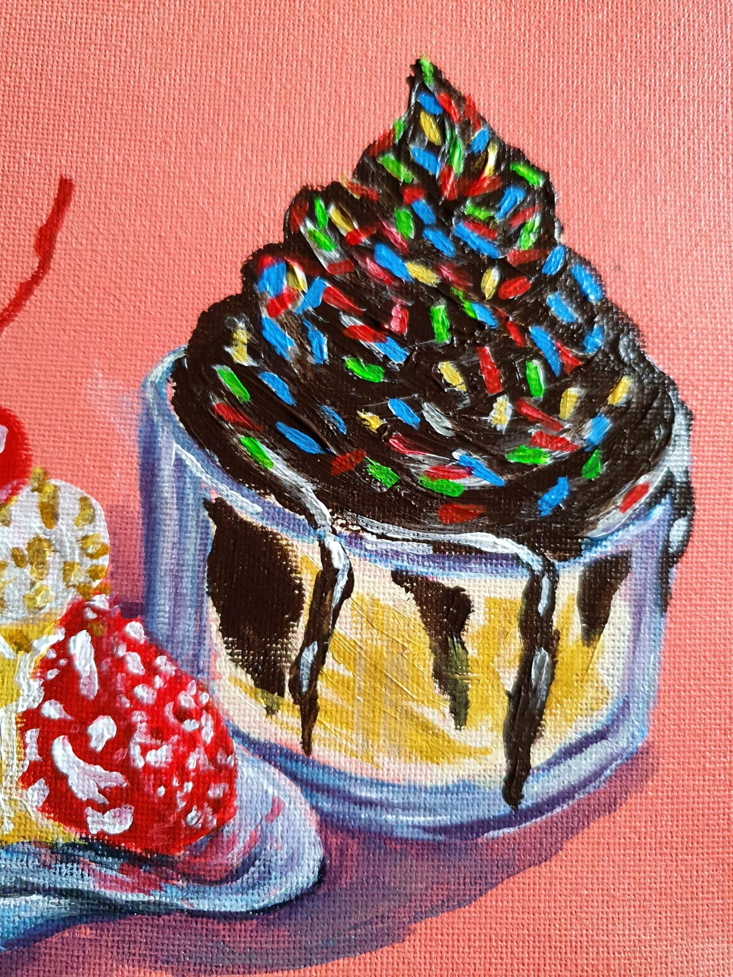 For me, this artwork is more than just a depiction of dessert; it’s a reminder to savor life’s sweet moments. A sundae is often enjoyed during celebrations or as a comforting treat, and this painting invites you to indulge in those small joys that make life delightful.