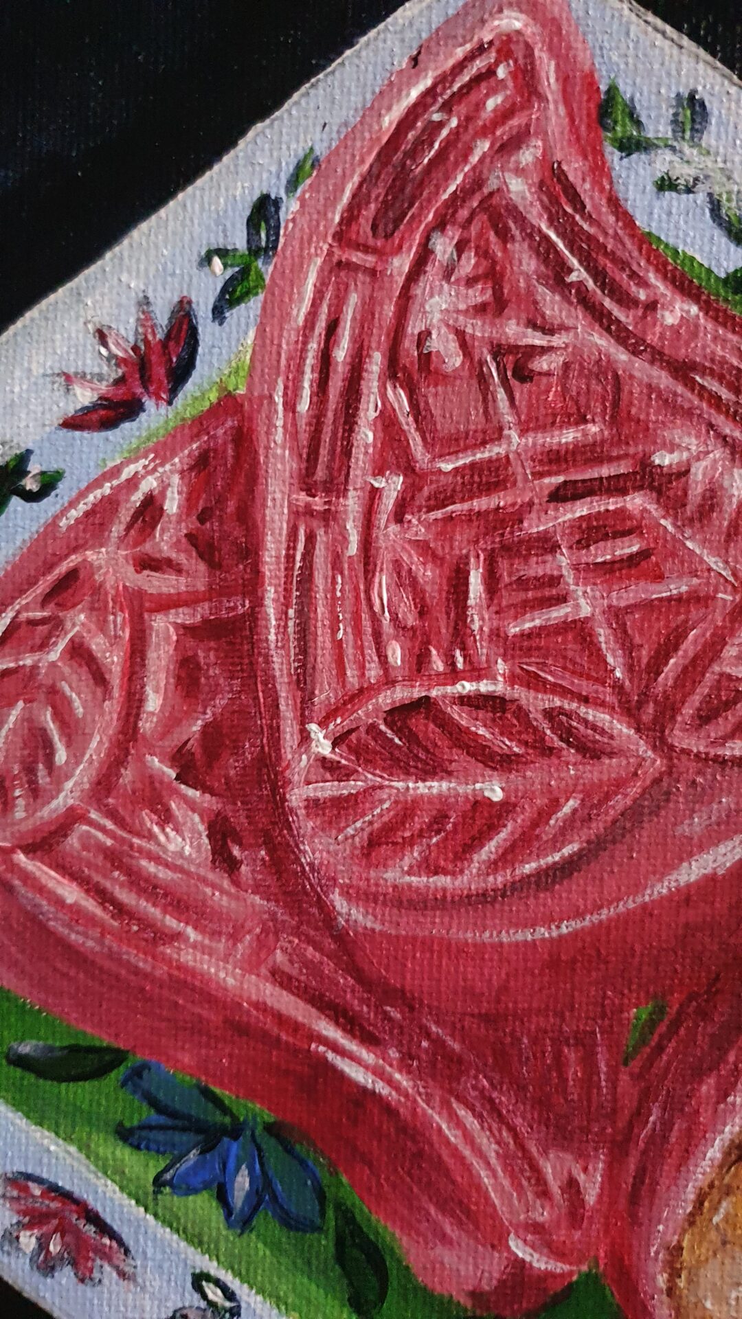 For me, this painting represents more than just food—it’s a tribute to the stories and memories tied to it. Pink Kueh symbolizes community, celebration, and the simple joy of savoring something made with care. It reminds us of the importance of preserving traditions while embracing their timeless beauty.