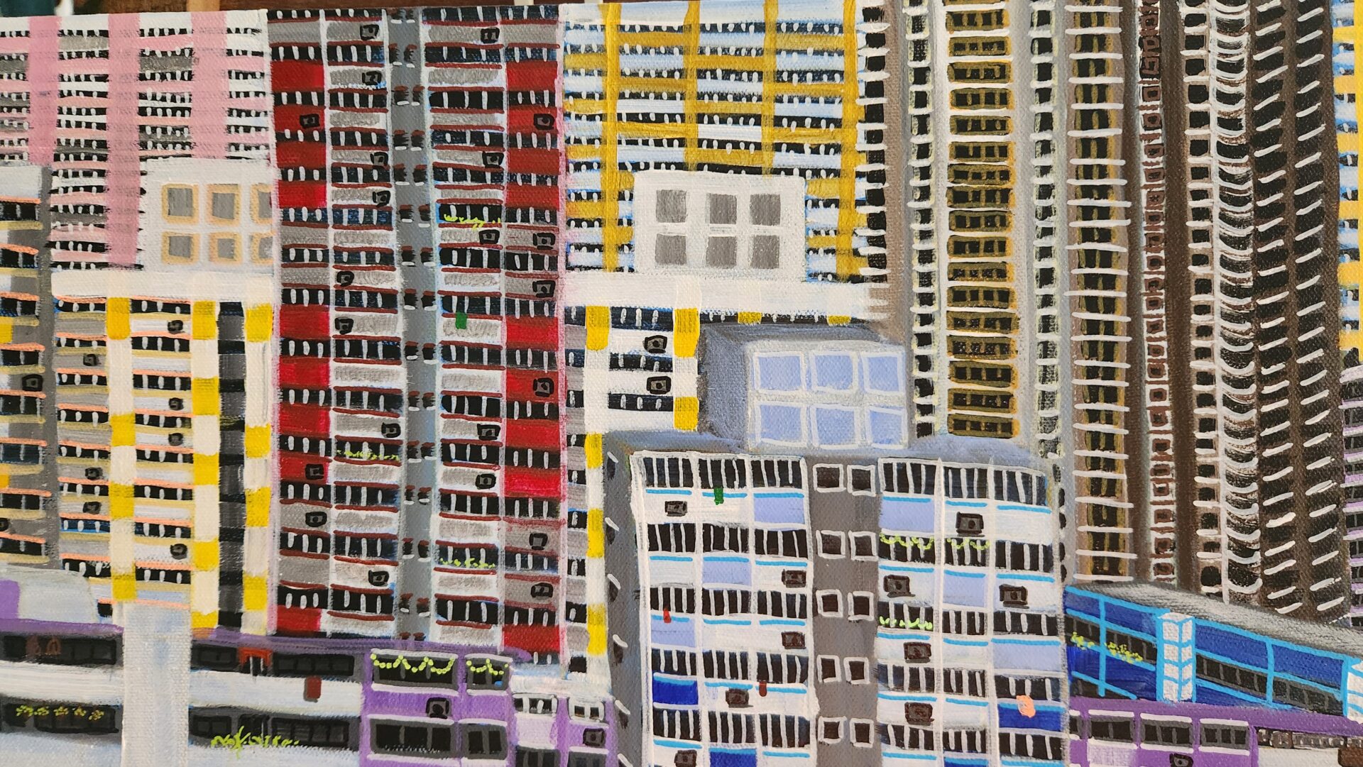 Tapestry of Home captures the essence of Singapore’s evolving urban landscape, showcasing the harmonious coexistence of old and new HDB flats. The painting celebrates the nostalgic charm of older flats as guardians of the past while highlighting the sleek, modern designs of newer ones, symbolizing progress and innovation. This piece reflects Singapore’s collective memory and identity, encouraging viewers to appreciate the balance between preserving cultural heritage and embracing the future. It is a tribute to resilience, community, and the delicate interplay between tradition and modernity in an ever-changing world.