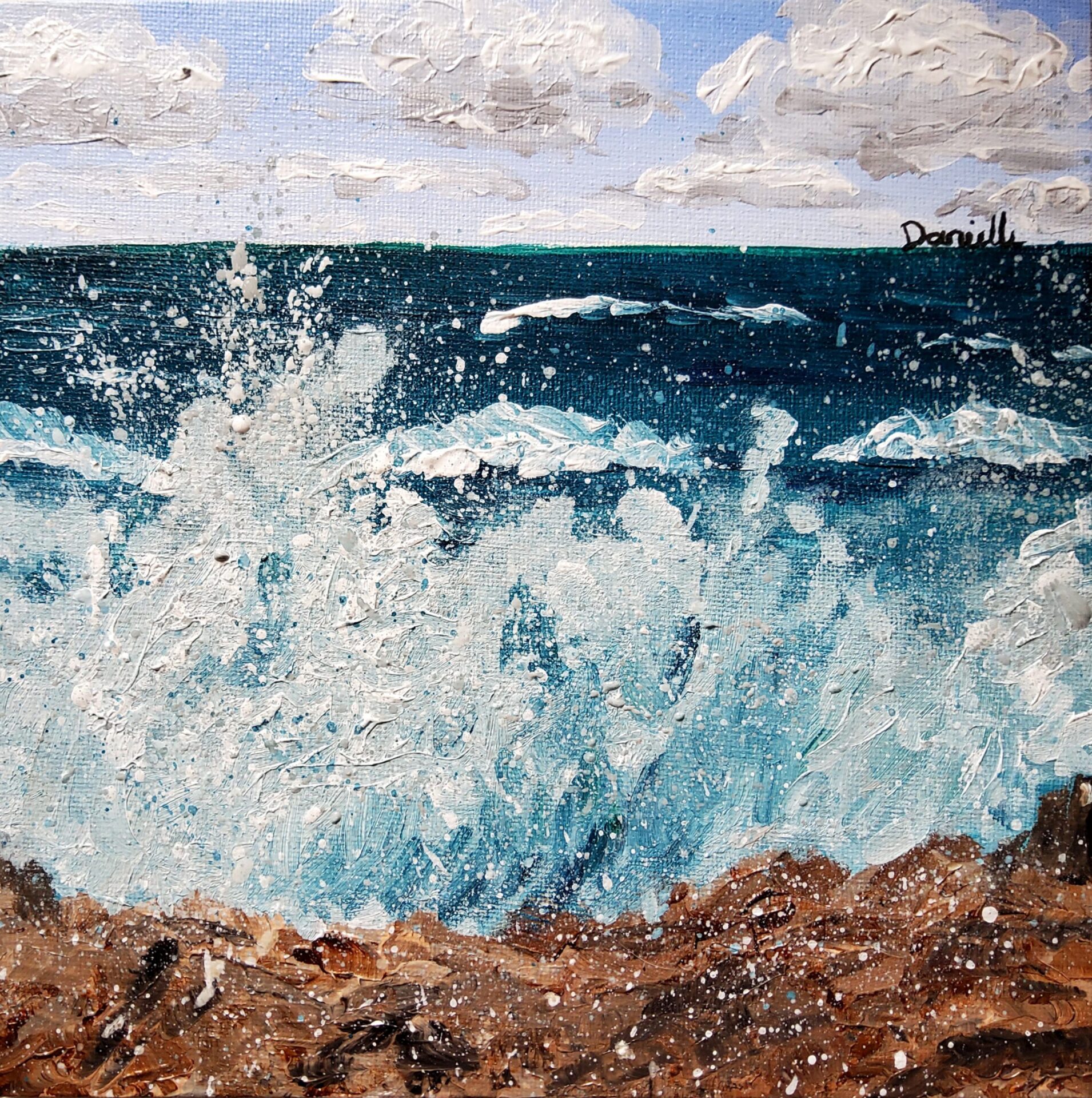 This piece signifies my current mood. The powerful waves hitting the rocks is me feeling powerful and powerless at the same time. Hoping to find my path soon.