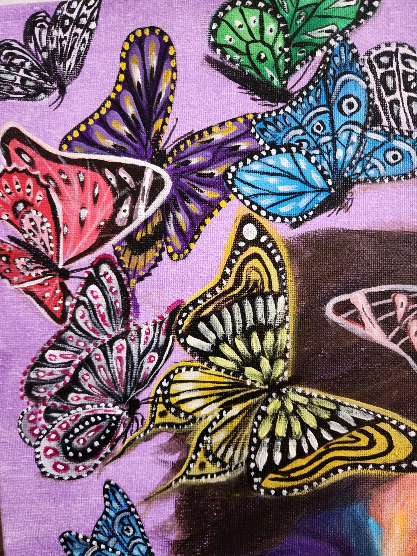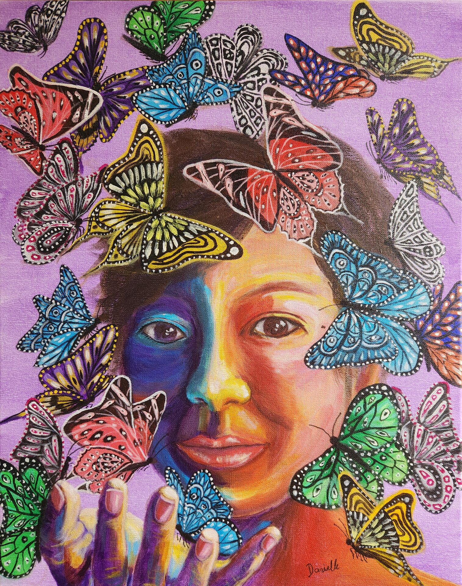 “Wings of Renewal” is a vibrant self-portrait celebrating transformation, resilience, and freedom. Surrounded by colorful butterflies symbolizing growth and joy, this painting reflects a personal journey of breaking free from toxicity and embracing a fulfilling life. Perfect for collectors seeking inspirational and empowering art.
